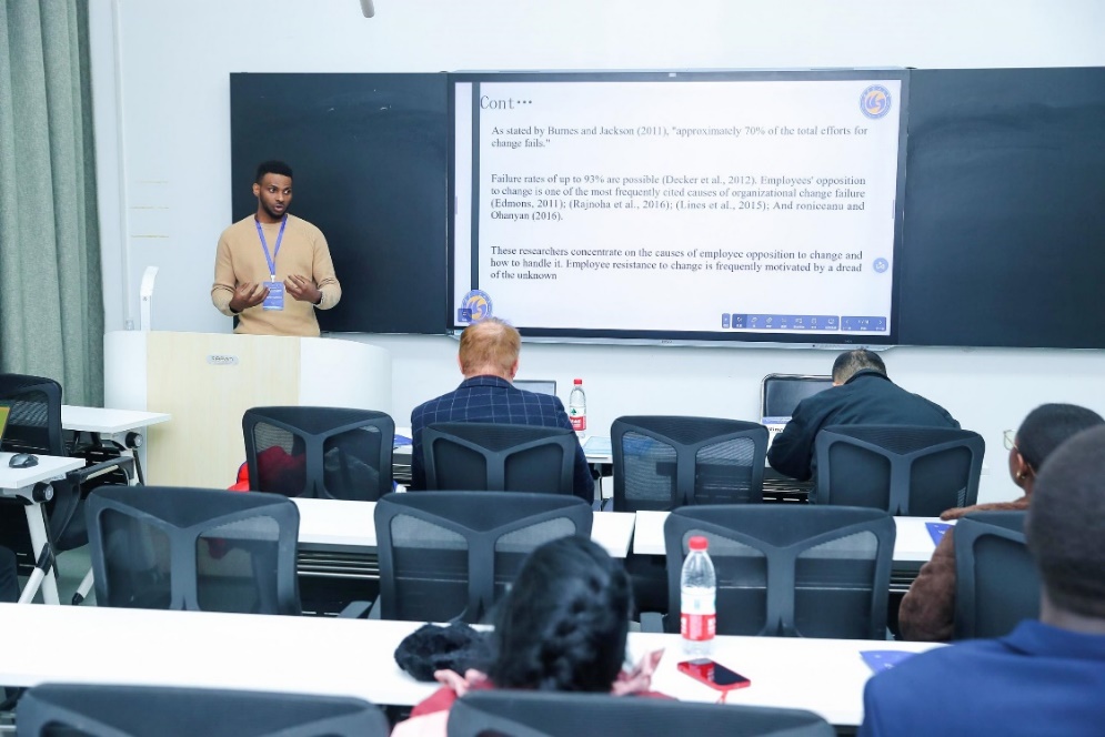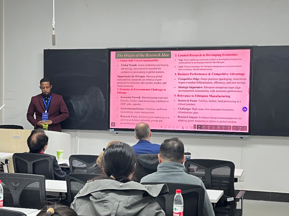 分论坛五由Bert Sadowski教授与赵新元教授主持,Joseph Nyabvudzi、Iqra Naeem、Bashir Hameed等代表参与宣讲。会议主要基于组织行为与人力资源管理展开,探讨了企业治理、绿色创新、程序公平及AI协作对企业的影响。