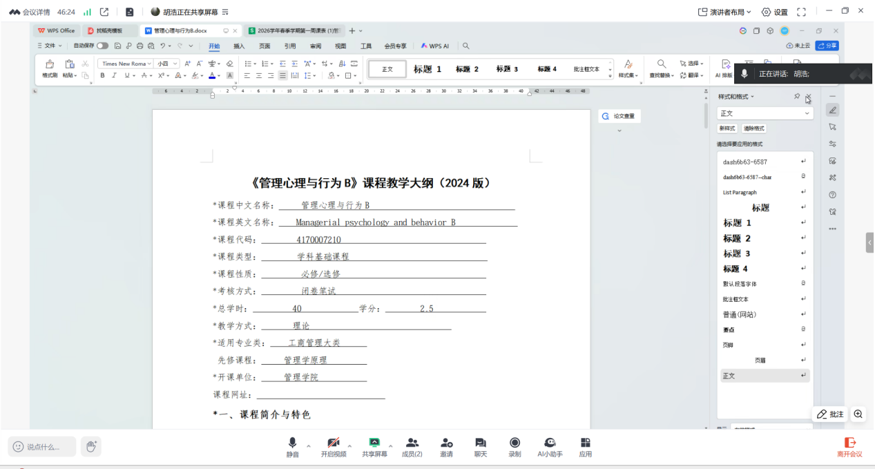 2026年3月1日上午,赌场老虎机 组织与人力资源管理系通过线上会议成功开展了《管理心理与行为》课程的集中备课活动。本次活动旨在进一步提升课程教学质量,优化工商管理大类专业核心课程建设。