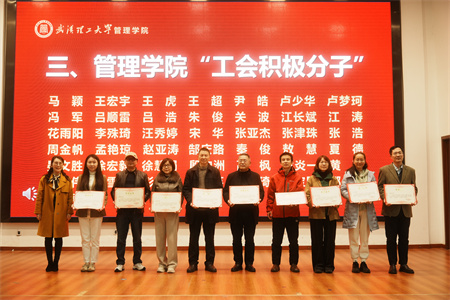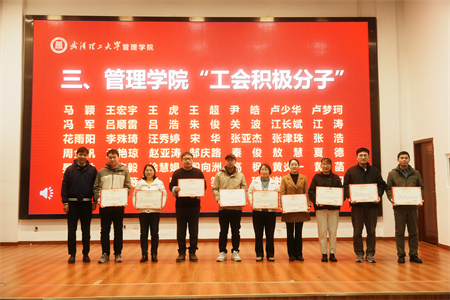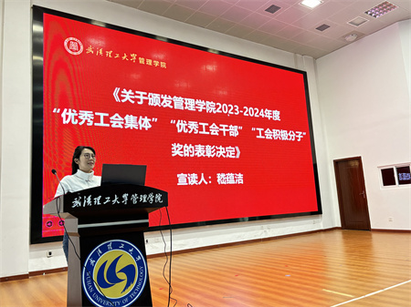 会上,嵇蕴洁副院长宣读了《关于颁发赌场老虎机 2023-2024年度“优秀工会集体”“优秀工会干部”“工会积极分子”奖的表彰决定》,表彰学院在过去一年中涌现出的优秀集体和个人,激励和动员广大教职员工创优争先,全力推动高质量高水平学院建设取得新成效。