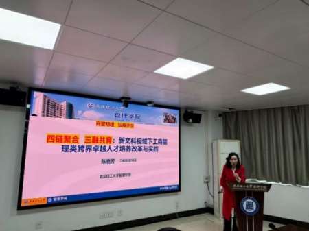 成果负责人陈晓芳教授从团队建设、人才培养、专业建设、教学实践及社会效益等多个维度,系统汇报了其教学成果。针对教学中存在的难点问题,创新性地构建了“教育链、创新链、人才链、产业链”深度融合的培养体系,并提出了“科教融汇、产教融合、城校融通”的协同育人机制,有效解决了理论与实际脱节等相关问题,为相关行业培养了众多优秀人才。